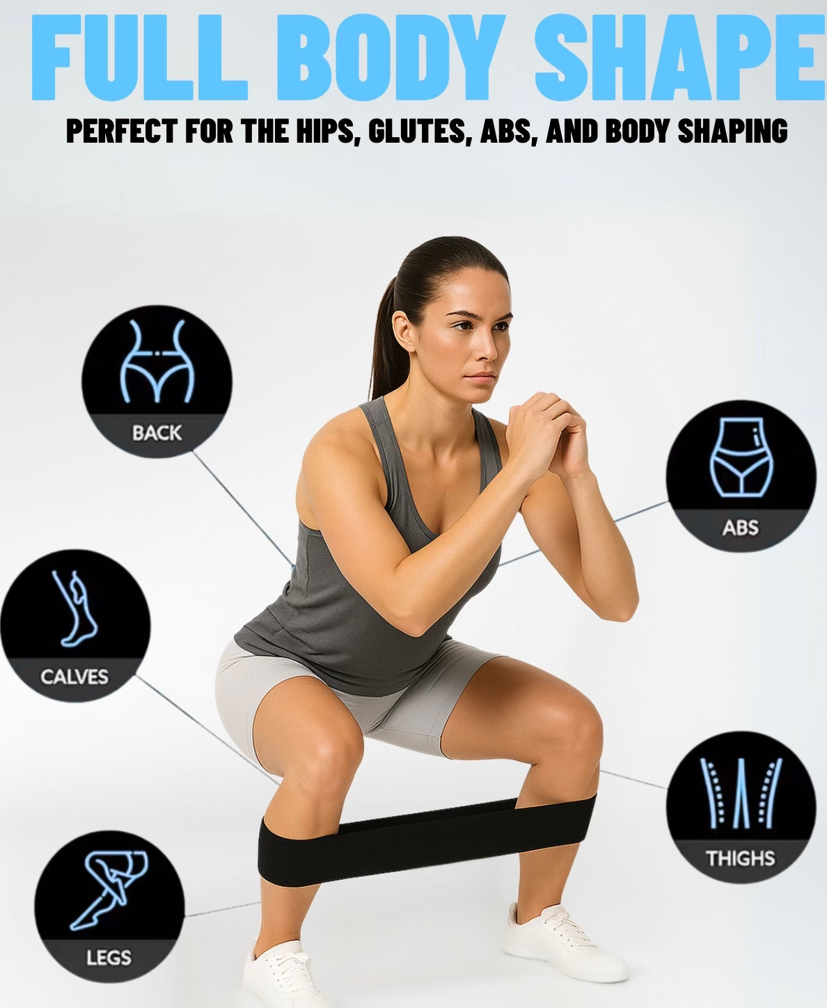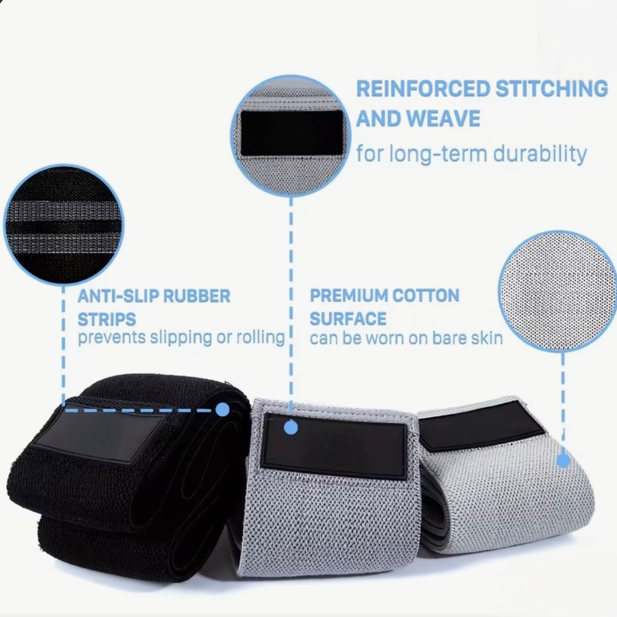 - Set Up Anywhere – Slip the non-slip fabric band around your legs, hips, or arms—perfect for home, gym, or travel.