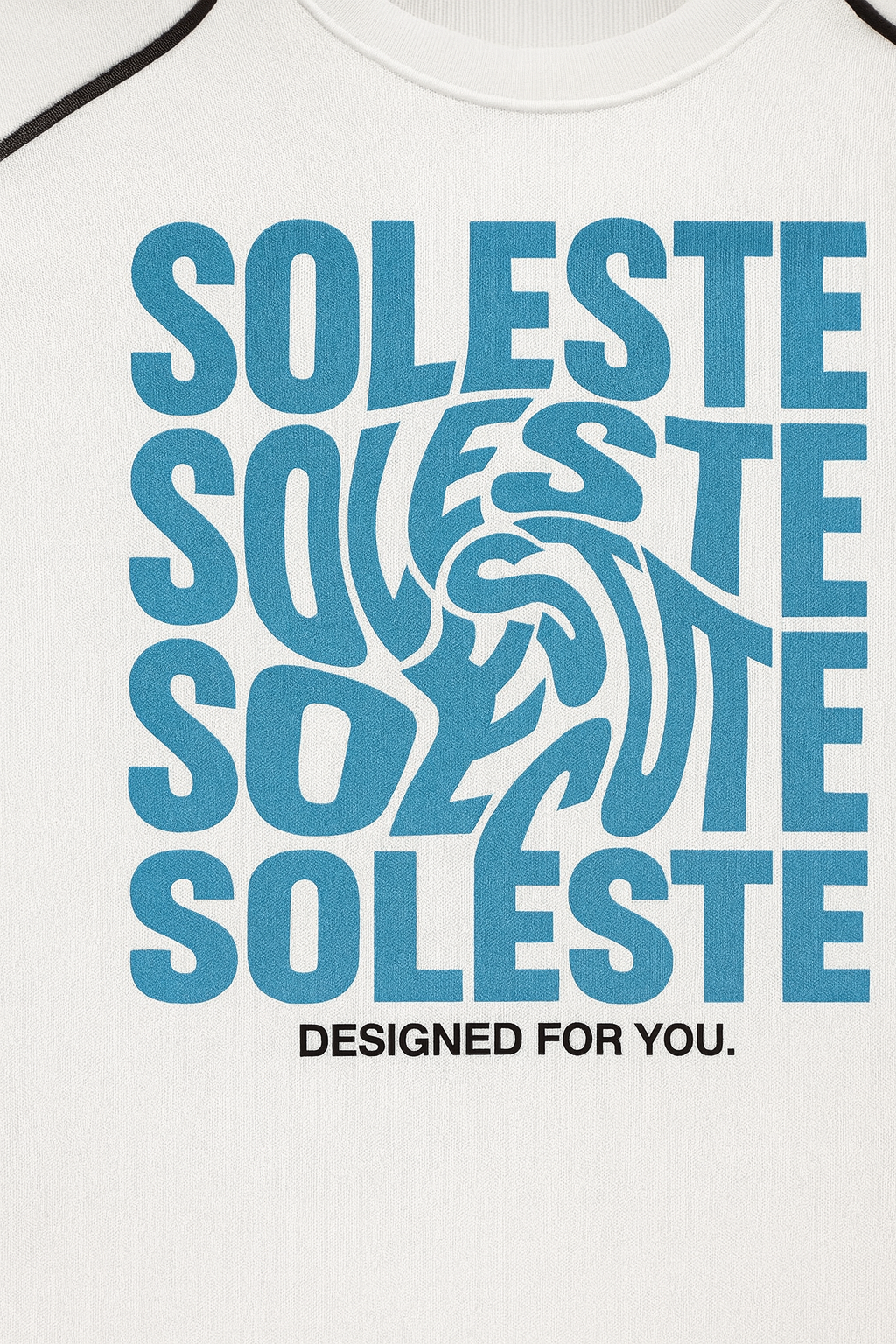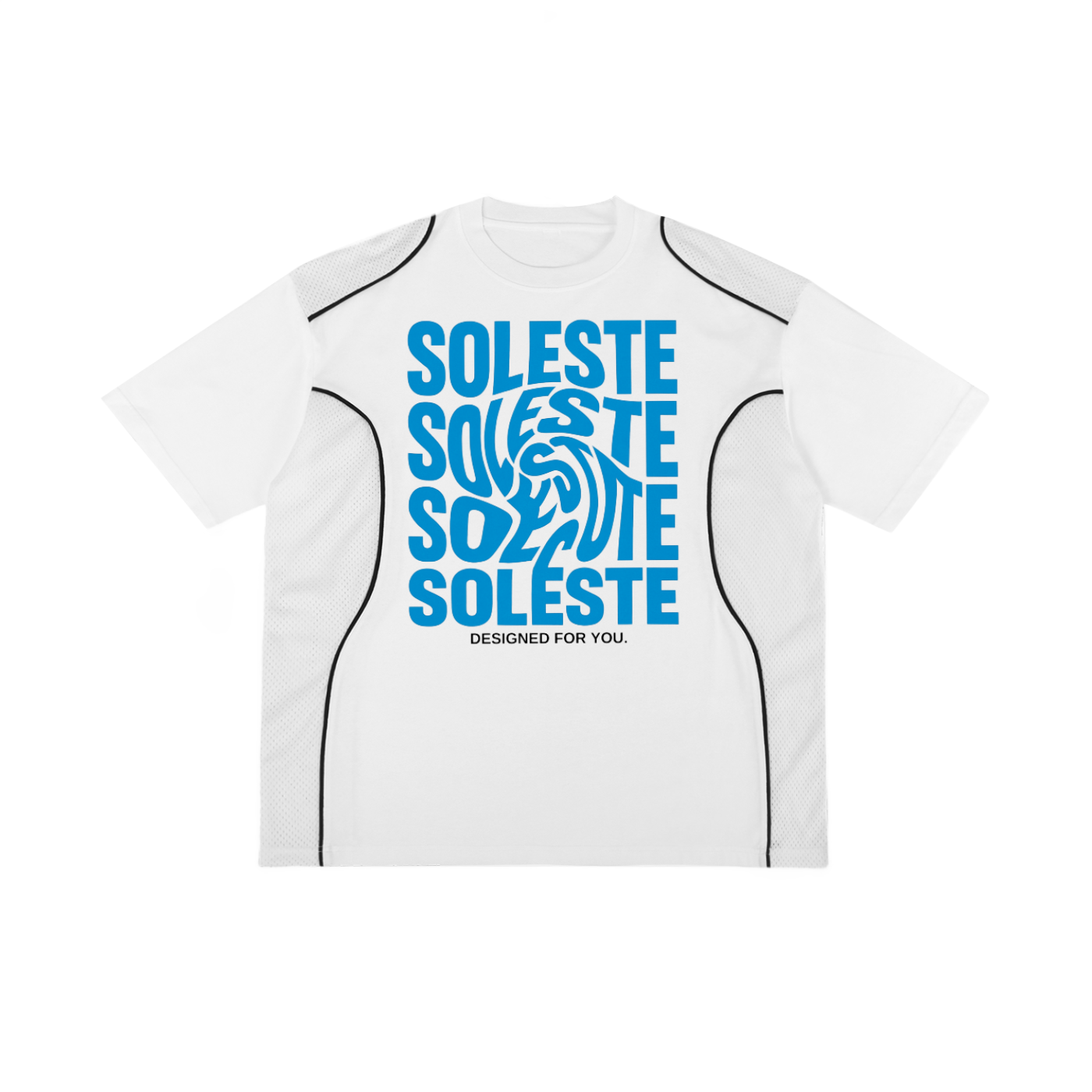 - Stand Out Effortlessly – The bold Soleste™ blue warped graphic turns a basic white tee into a statement piece.